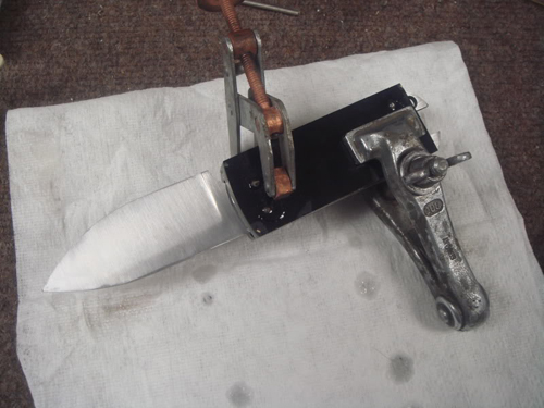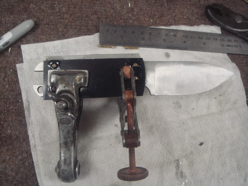 I built a small work rest to do flat grinds on , it helps to hold the blade still.