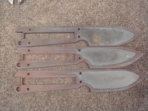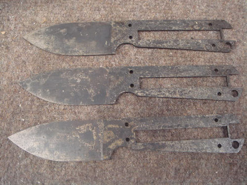 Here they are after the heat treatment , that's the oil burned on the blade.