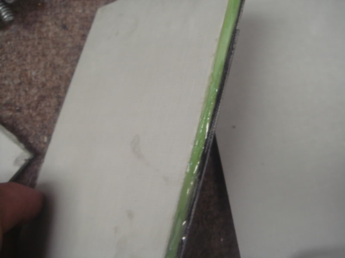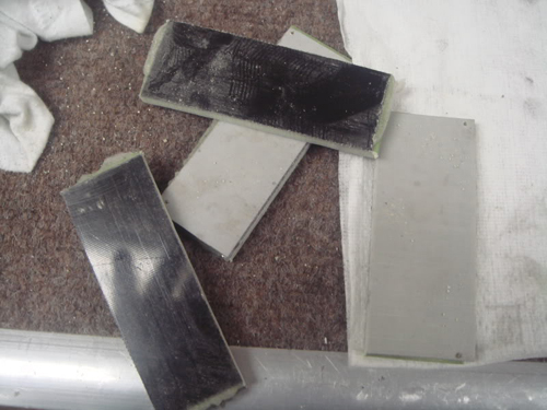 I sand each side with a 30 grit block and then use Devcon 5 min epoxy to hold em together. I put it in my 20 ton press and squeeze the chit outa it.