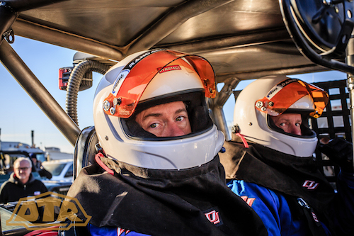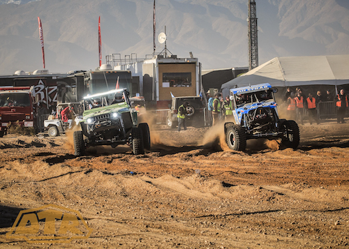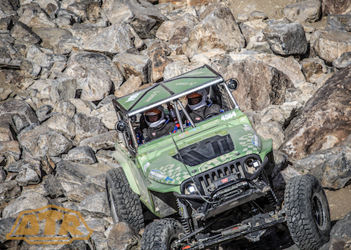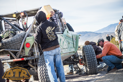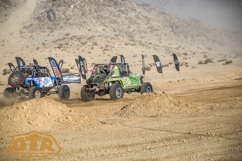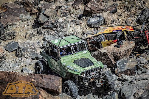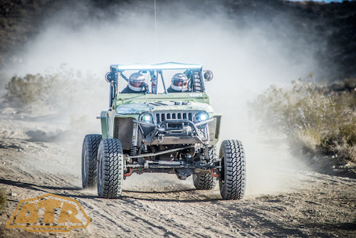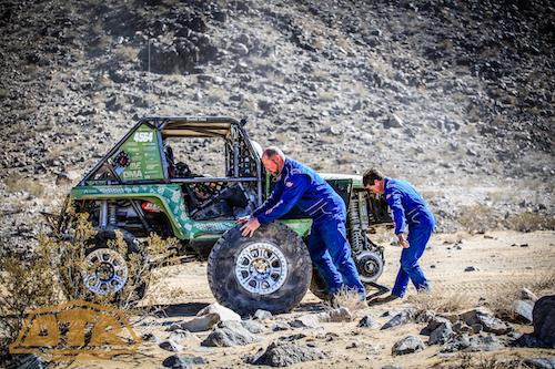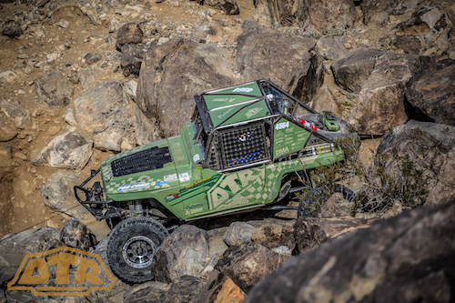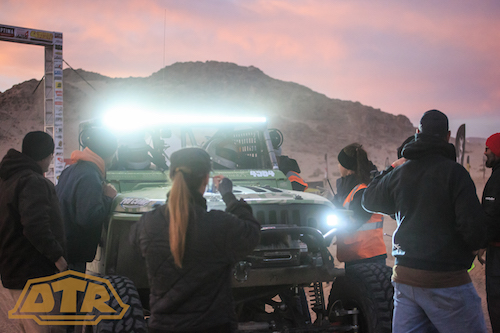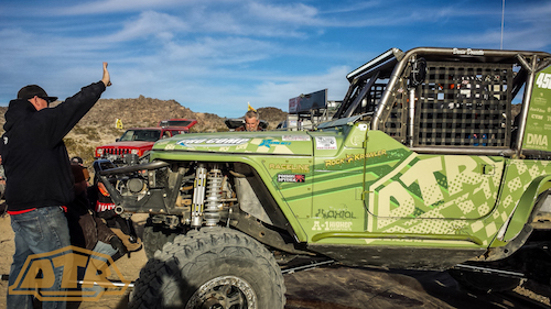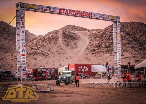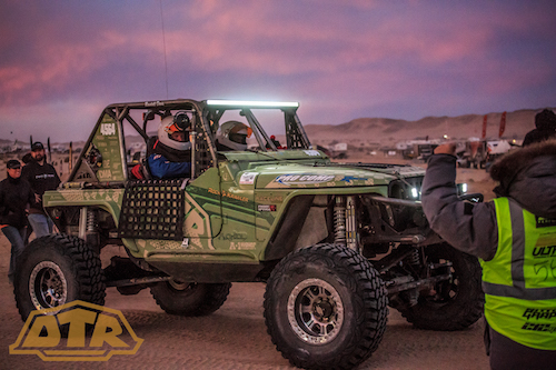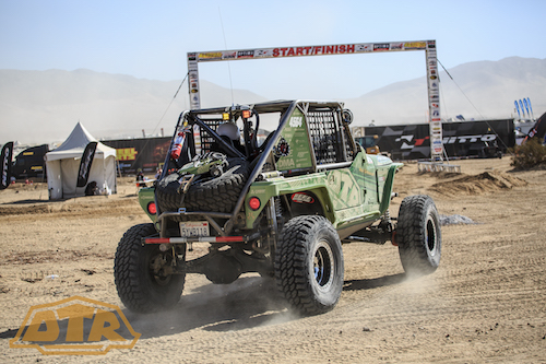 We headed down into Aftershock just after RM88. We picked our way through the rocks and caught up to a rig that was struggling in the rock garden, and that was when we noticed the bypass line. We broke right and skated on by, passing another rig. We got to the bottom of the trail and came across another rig that was broken and passed by him as well. We were on the move and clicking off the miles between Aftershock and Emerson Dry Lake. As we came down the hill approaching Emerson Dry Lake, around RM92, we prepared for our final high-speed run across the lakebed. We were all alone out there and completely dust free. The conditions were perfect so I smashed the skinny pedal and let the motor sing. We were up to 80mph and still climbing. We knew our motor did not have much more and we were running out of space on the lakebed. But knowing there was a bit of a run-out at the end, I stayed in it getting up to a final top speed of 88mph and then let off. We cruised through the next several miles of the flowy desert trail leading up to RM99. Safely making our way there, it was time to cross a totally whooped out section on the course. At around RM100 to RM103, this is where I could lose my lunch and the Turtle if I wasn’t careful. The sun was staring to come down and as we made a slight left around RM105 it put the sun right in our eyes. Through the next couple of miles of whoops, I had to drive with one hand on the wheel and one blocking the sun. It was unsafe to get any sort of speed built up with only one hand on the wheel, so we just cruised keeping the Turtle safe and intact. We made the left a little after RM106 and were headed back on to a portion of course that we ran in Lap 1. It was nice to be back on some familiar trails. At RM55, we reached the final checkpoint and they informed us that we had only 45 minutes to get back to the finish line. Darin said, “There is no way we are timing out after coming this far. Hammer down buddy – Let’s do this.” I was unsure of the distance that we had left and how long it would actually take. But I recalled that the final section had a lot of sand and rocks strewn about, and we would have to tackle the nasty sand hill after RM57 from Lap 1. Picking our way through the sand and rocks, we kept moving along -- Sometimes, at what seemed to be a very slow pace, but we were still moving. We came to the sand hill that Larry coached us up before and Darin called out to see if Larry was still there. Nothing but radio silence, so it was up to us to conquer the hill. We hit it hard and screamed up the hill, but at the top the Turtle started to peter-out and was barely creeping along. I worked the rig with a little sand crawl, turning the tires left and right, and we were able to make it up and continue on. Picking through the rest of the rocks and sand we made it out and were headed across the last desert section towards the finish line. I can remember driving along and thinking to myself, just keep it together we are going to make it. We made it to a point where we could see Hammertown and the Start/Finish line – We were just moments away from completing our goal. We were at the bottom of the last hill climb and on the other side was the Finish line. Up and over we go, zooming down the hill to take the checker flag at the Finish line at RM114.