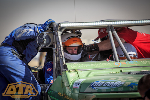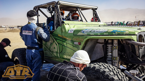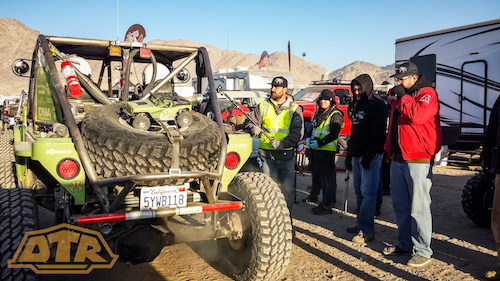 There had to be at least 8 guys combined from the Poison Spyder crew and the Desert Turtle Racing crew working on the rig, making adjustments and some slight changes to the car for us to hit the rocks. We climbed back in the car and got strapped in with our DJ Safety Harnesses.