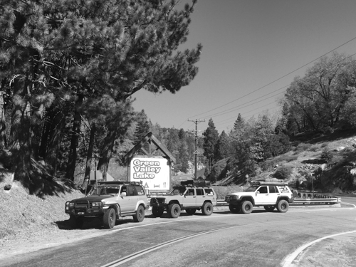 The logistics of looking after your crew is like looking after your kids! Add in adventure and the stakes increases six-fold. No, not the ones on the grill, the risk-factor! In all seriousness, six persons coming from six different directions and we only need-want two vehicles for our mission, this requires some sorting the details out! We will actually have three vehicles in use for this trip; ScottG is picking up ScottR, Rivas is driving to Schultz's house and riding with him and I am picking up Tony Phalen from his house. No, ScottK is not on this trip as he is holding down the office-fort. Three "Scott's" one office, I got it sorted! "G-K-R!" What we will be doing is traveling from our six personal locations and all descending onto a camp location nestled north west of Big Bear lake called Big Pine Flats.
